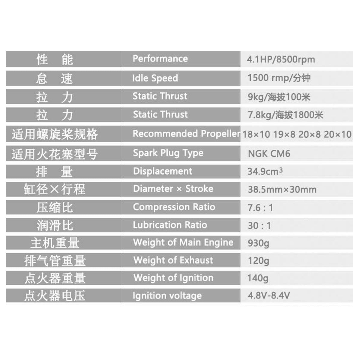 - Recommended Propeller: 18*10; 19*8; 20*8; 20*10