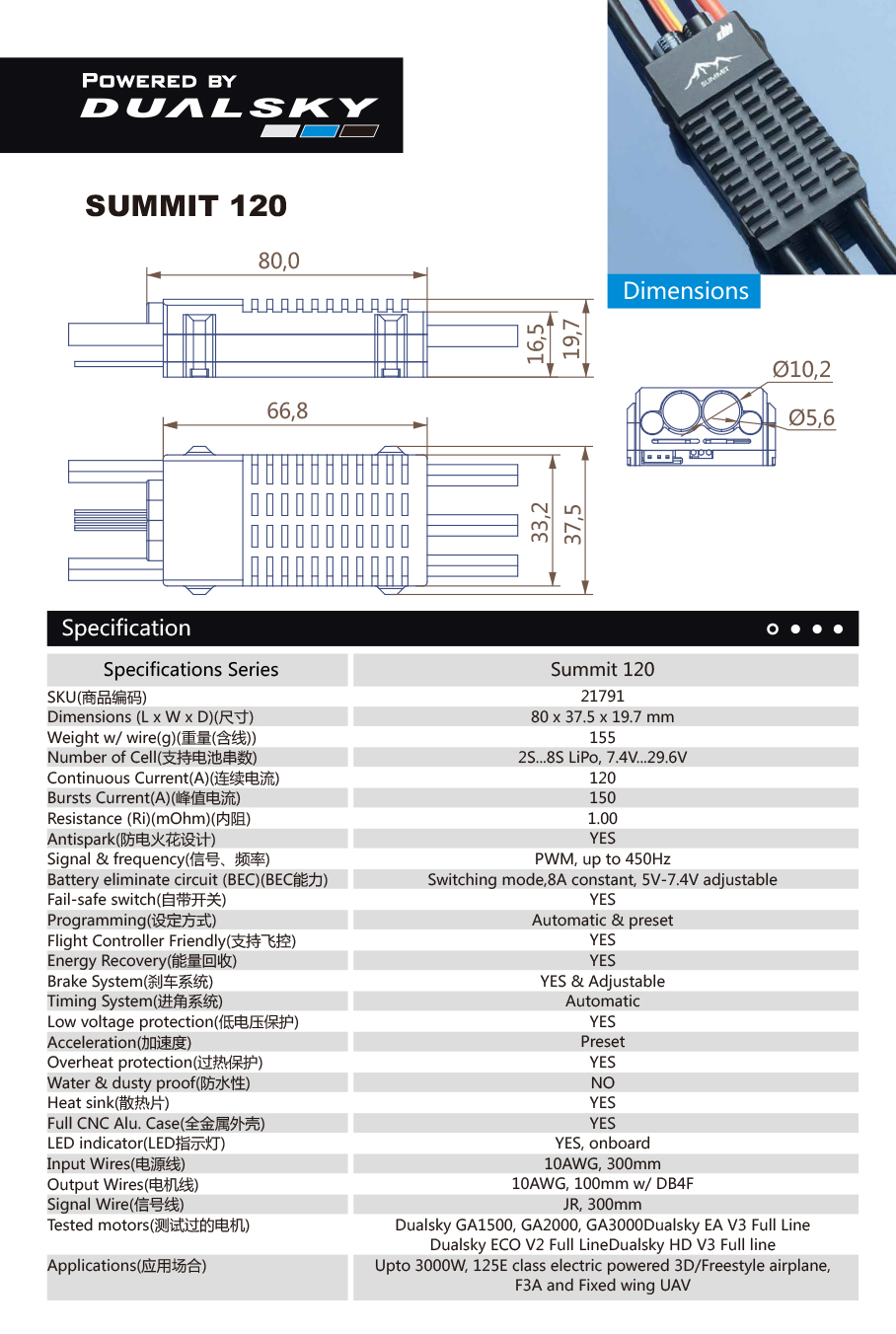 SUMMIT 120 SUMMIT Series Brushless Speed Controller ESC for RC Aircraft