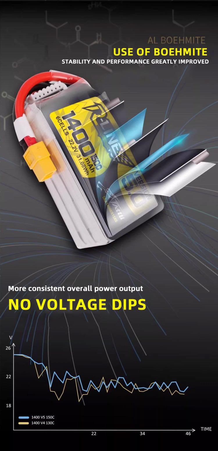 Tattu R-Line 5.0 Series Higher Capacity for FPV Racing Drone Parts with XT60 Plug 6S Battery