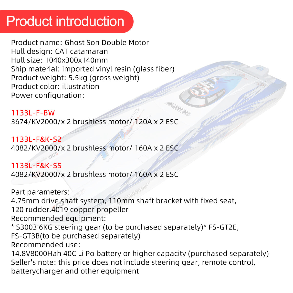 TFL 1133 Zonda Cat Fiberglass RC Electric Boat Outside Toys Blue Color TFL Hobby Model