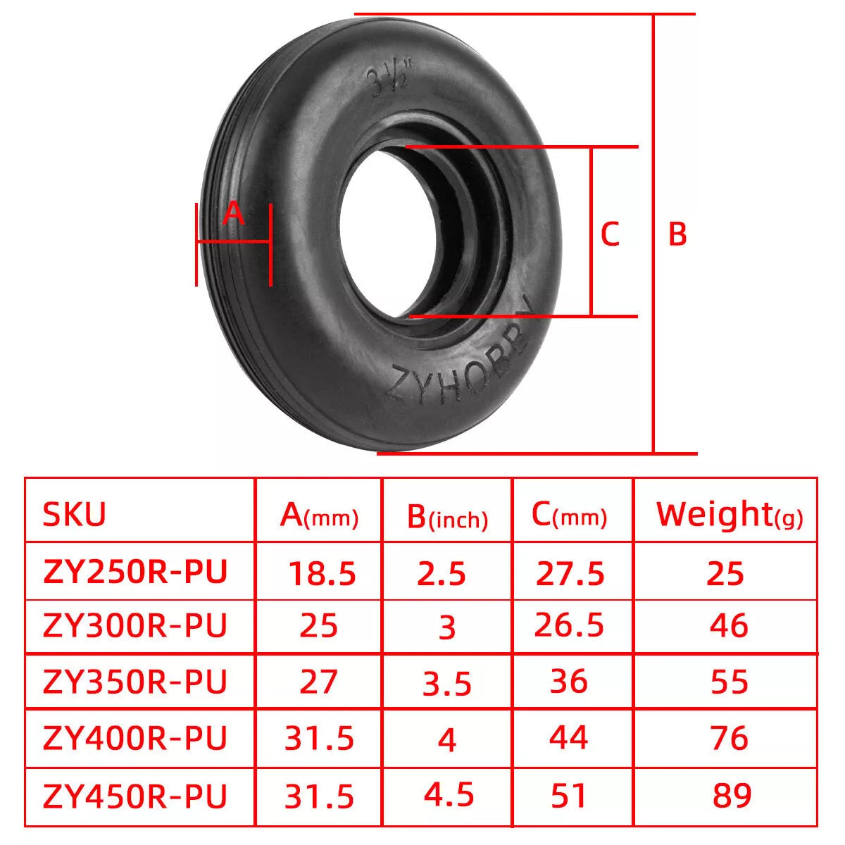 1PCS 3/3.5/4/4.5inch Rubber PU Wheel tyre for RC Airplane Models