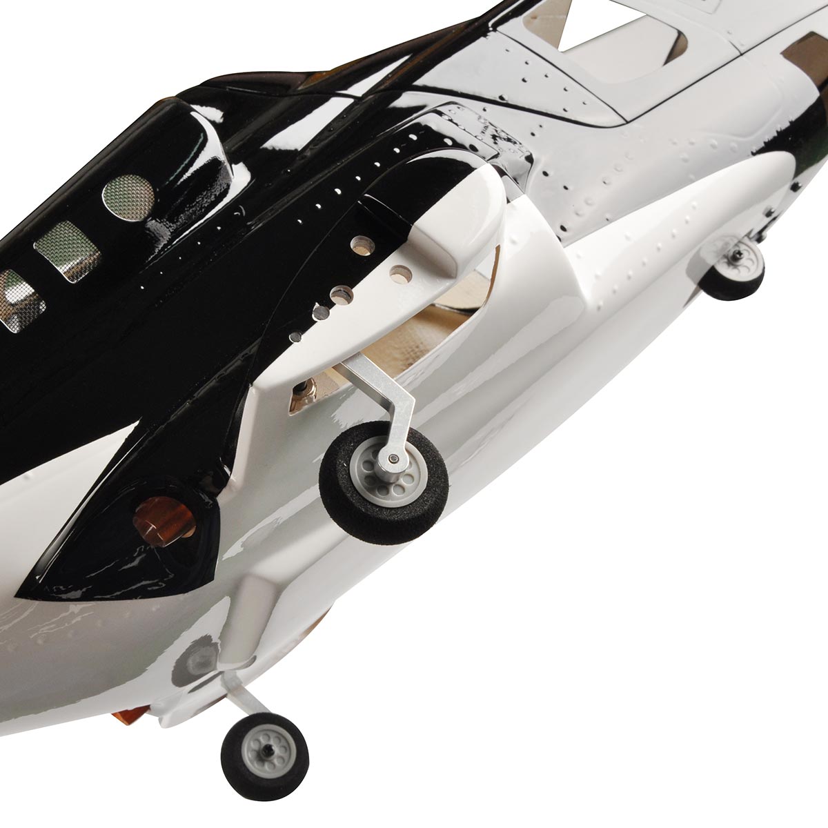 - Transparent front window, side windows open for heat dissipation. Including mounting accessories and landing gear. Landing gear is retracteable, all mechanical components are included.