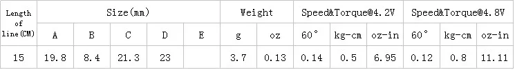 Stall Torque (4.2V): 0.5kg.cm (6.95oz/in)