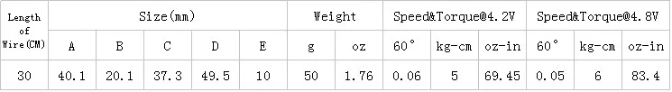 Stall Torque (6.0V):nbsp5 kg.cm (69.45oz/in)