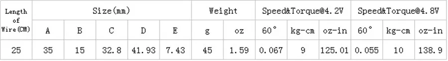 Operating Speed (6.0V): 0.067sec/60 degrees