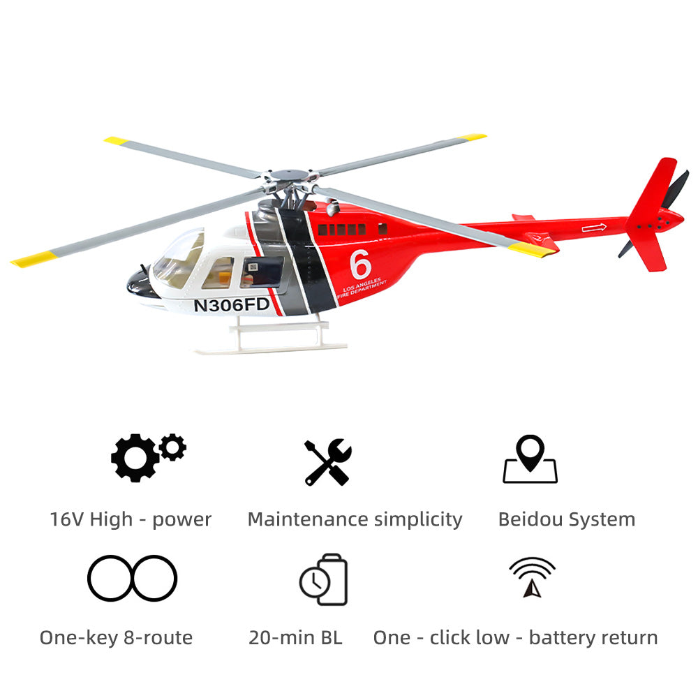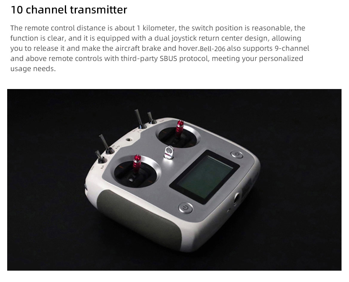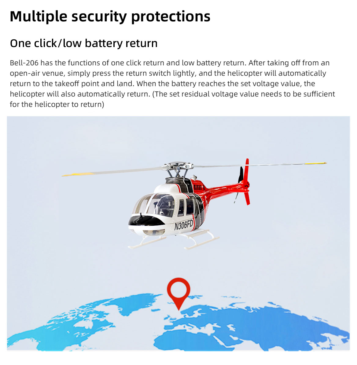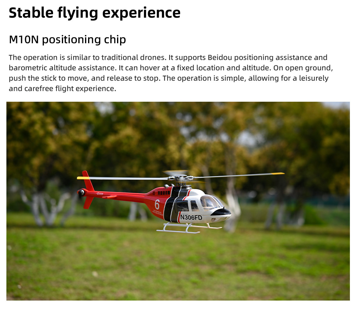 FLYWING BELL206 Helicopter 4-blades H1 System M10 GPS Mode+3D Acro Mode One Key Return 10 Channel Transmitter RTF Version