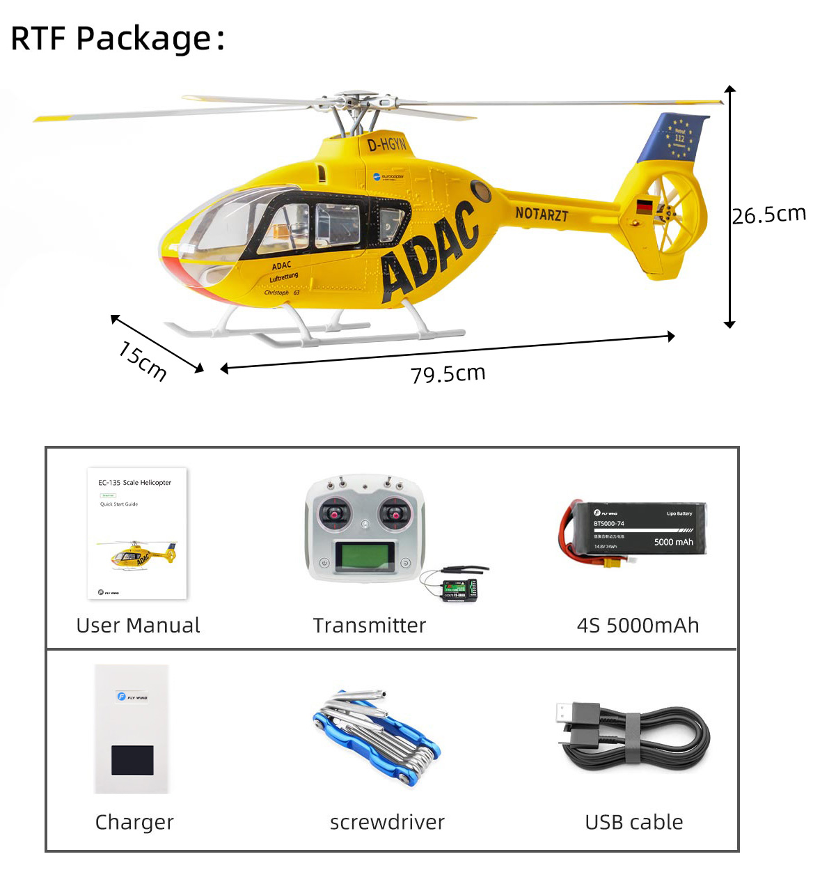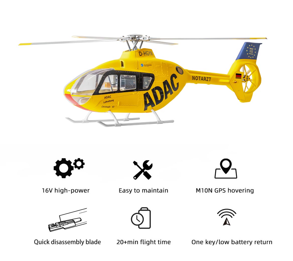 FLYWING EC-135 Helicopter M10N GPS Module H1 Syeterm 10 Channel Transtmitter RTF Version