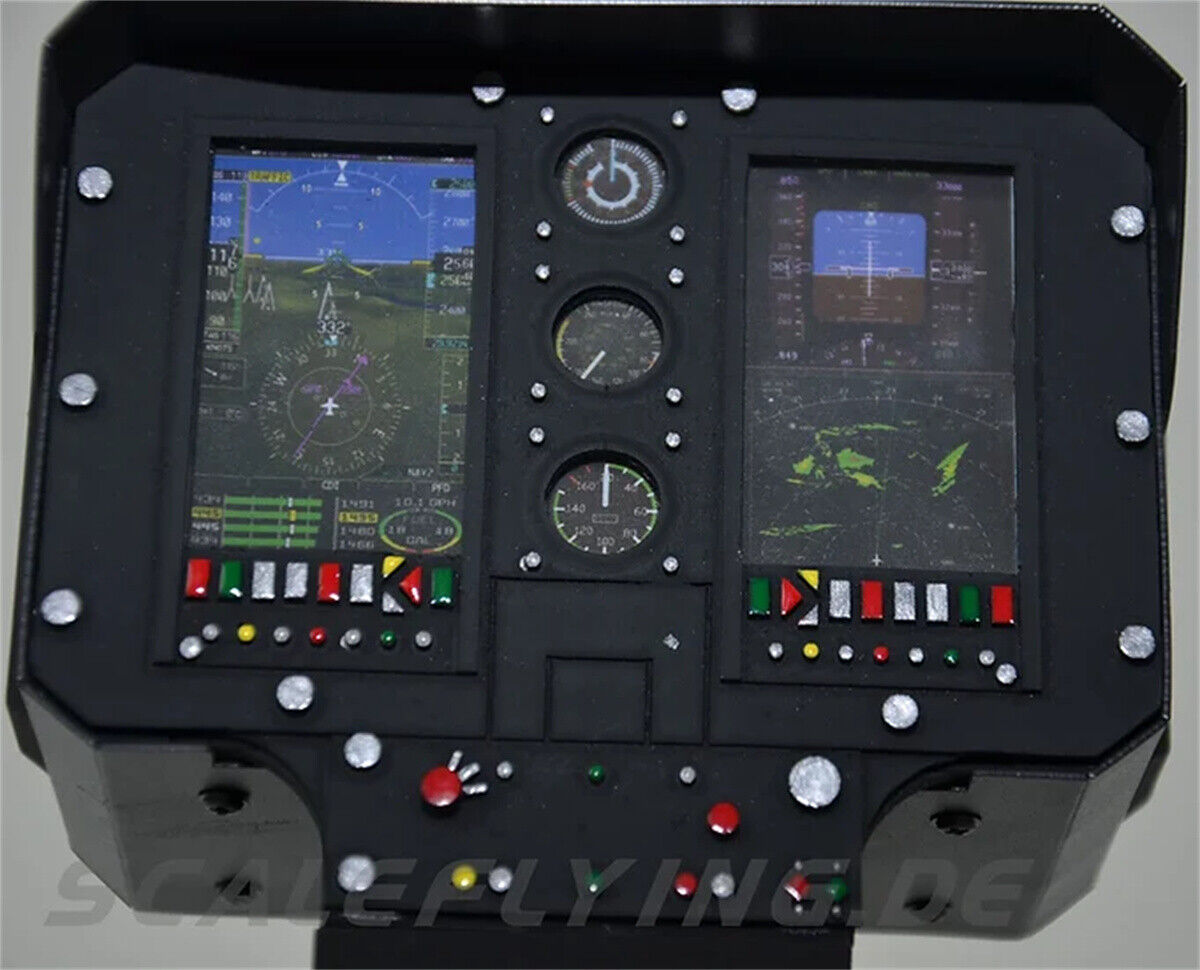 Specification: Body length: 1980mm Length incl. rotors: 1960mm Width: 590mm Height: 645mm Main rotor diameter 1660mm Main blade length: 750mm Fenstron diameter: 160mm Tail blade length: 70mm Main shaft diameter: 12mm Tail shaft diameter: 5mm Spindle diameter: 8mm Main blade count: 2 Tail blade count: 9 Drive gear ratio: 1:13.8:4.7 Motor:* 1x 750MX 450KV brushless outrunner , 12S capable Speed controller:* 1x 120A brushless, 12S capable Servo:* 3x metal gear cyclic, 1x metal gear tail servo Battery:* 44.4V 5000mAh 35C Flight time: 8 minutes Takeoff weight: 8000g Flight Stabilization:* 3 axis flybarless gyro Radio Control:* min. 6 channel with pitch and throttle curves ATTENTION: This scale helicopter comes with a complete scale ! But Electronic components need to purchase separately ! Terms and Condition