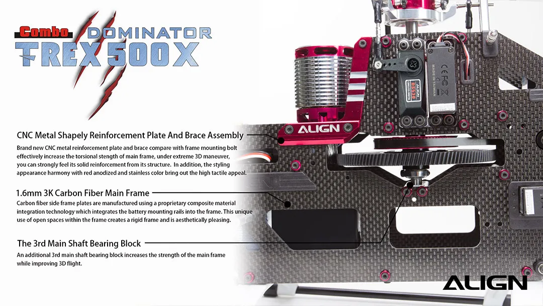 Equipped with all the top end electronic devices, T-REX 500X is as stable and powerful like the large scale helicopters. It is about to re-define the 500-class helicopters in your mind.